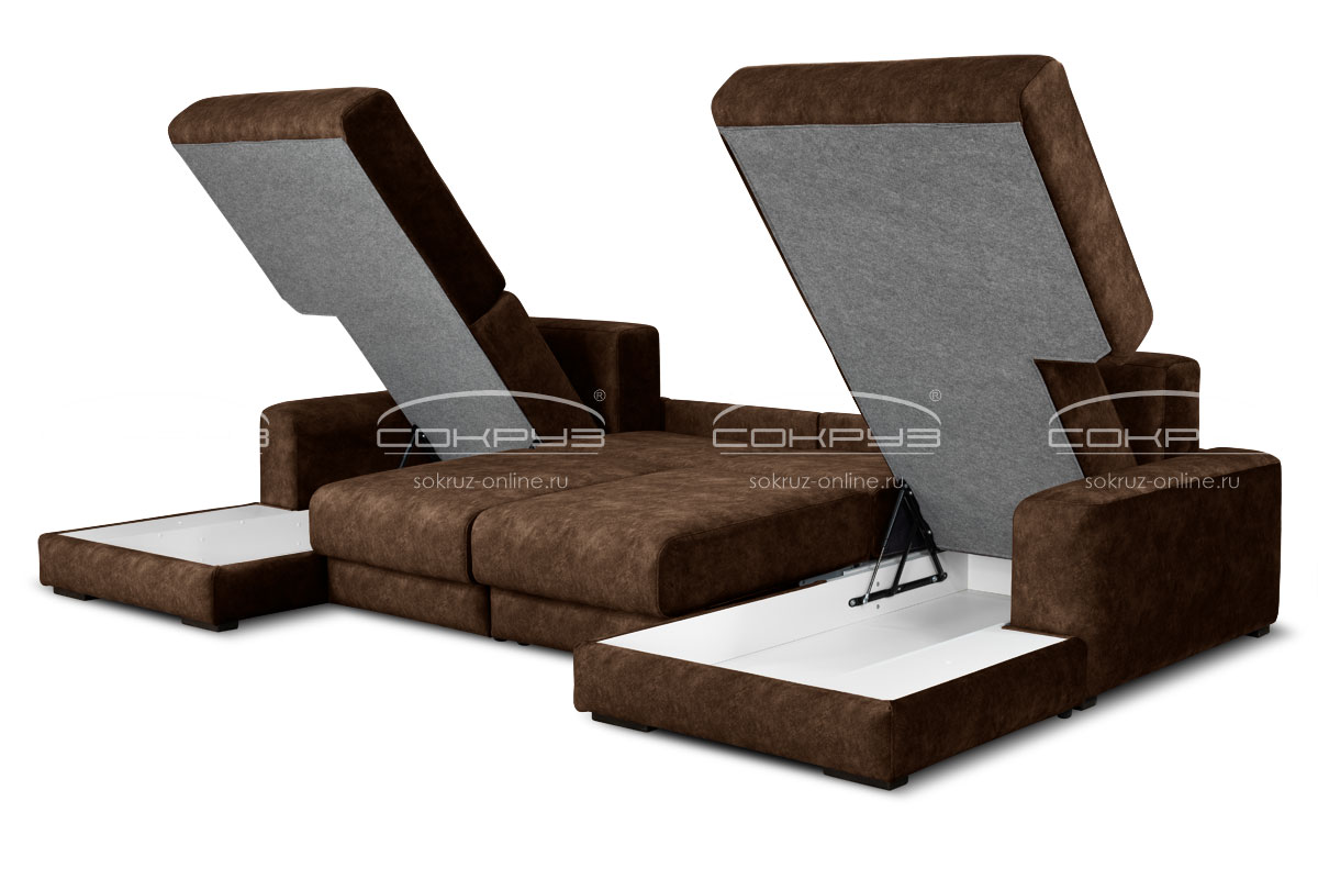 В основании каждого модуля находятся вместительные бельевые отсеки с крышками, а секции канапе, оборудованные газлифтами, также оборудованы вместительными ящиками для хранения.