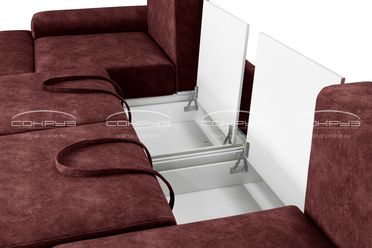 В основании каждого модуля находятся вместительные бельевые отсеки с крышками, а секции канапе, оборудованные газлифтами, также оборудованы вместительными ящиками для хранения.
