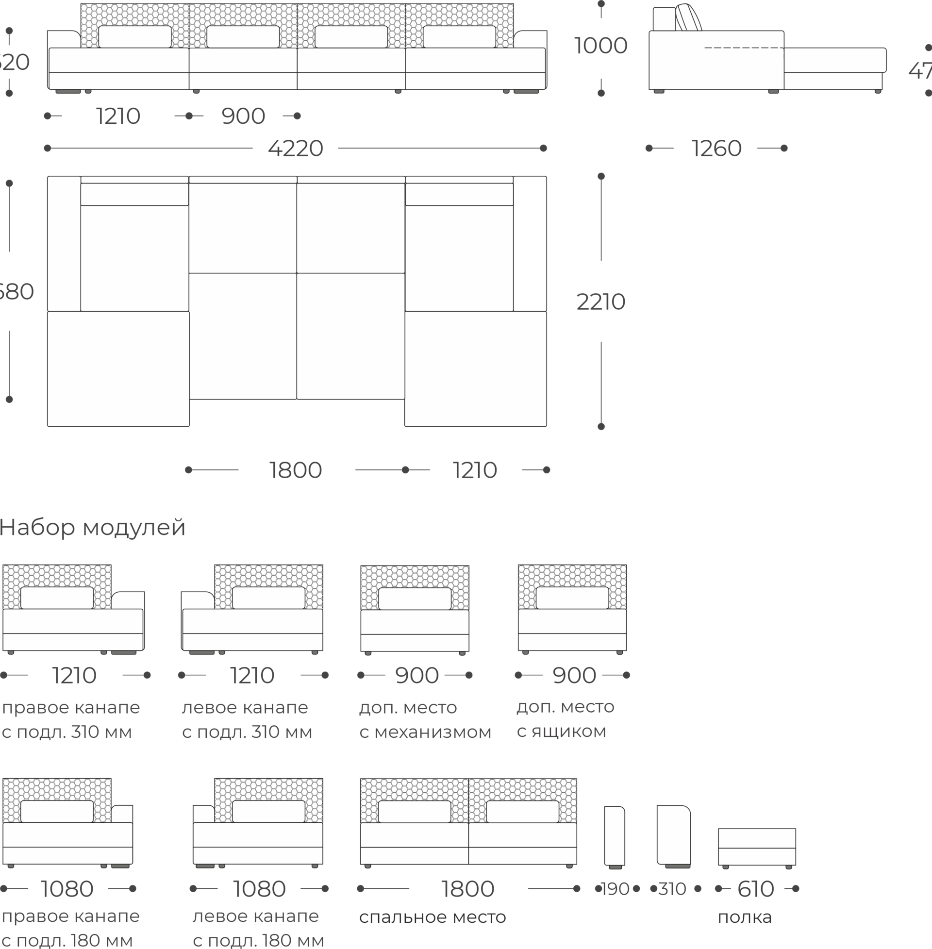 Дополнительные возможностивозможно увеличение размеров дивана за счет добавления дополнительных модулей